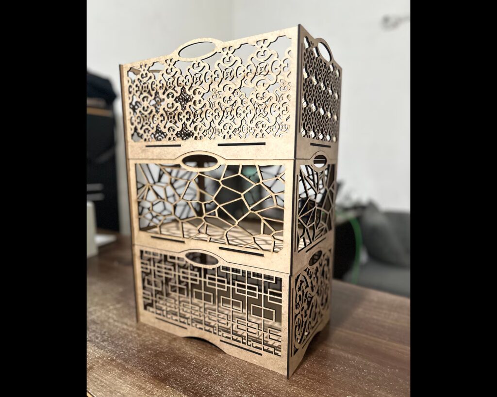 Zachwyca precyzyjnie wyciętymi, ażurowymi frontami w trzech różnych wzorach, które nadają mu elegancji i unikalnego charakteru.